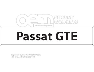 Viac v popise produktuThe car type plate features “Passat GTE” lettering in black on a white background. Format: 11 x 51.8 cm.