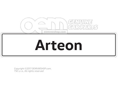 Viac v popise produktuThe car type plate features the "Arteon" lettering in black on a white background.