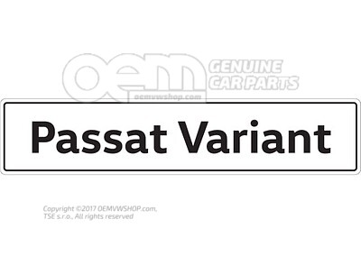 Viac v popise produktuThe car type plate features the "Passat Variant” (Passat Estate) lettering in black on a white background