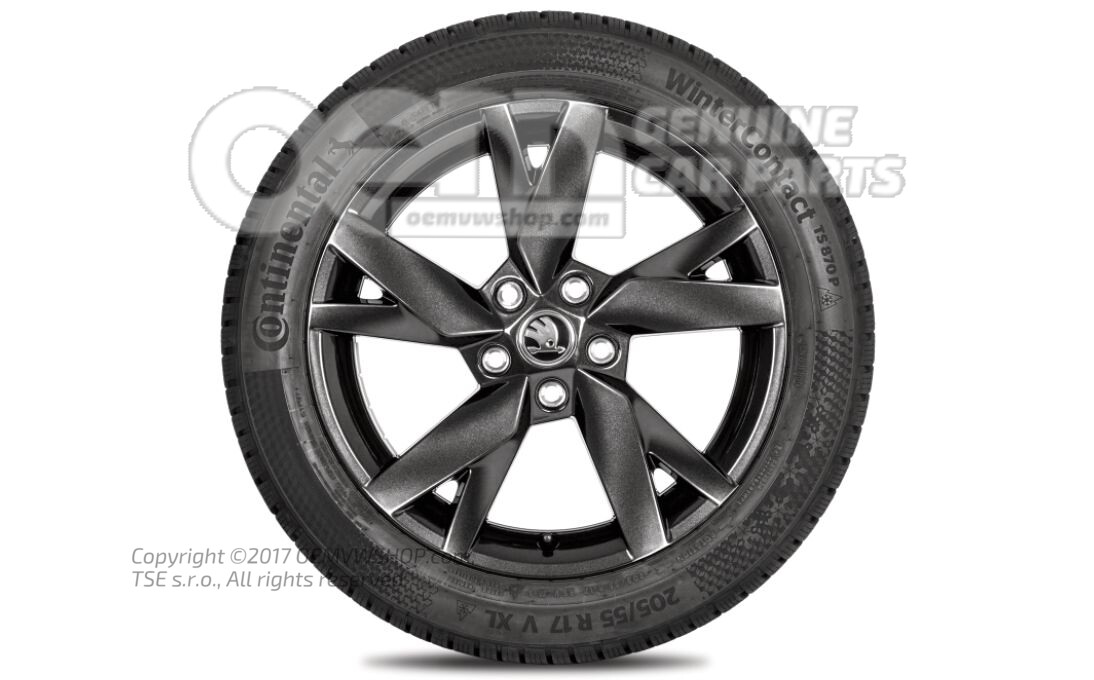 Kompletné zimné koleso 17" hliníkový ráfik vhodný pre snehové reťaze Brilantná čierna metalíza 5E3073527  FL8