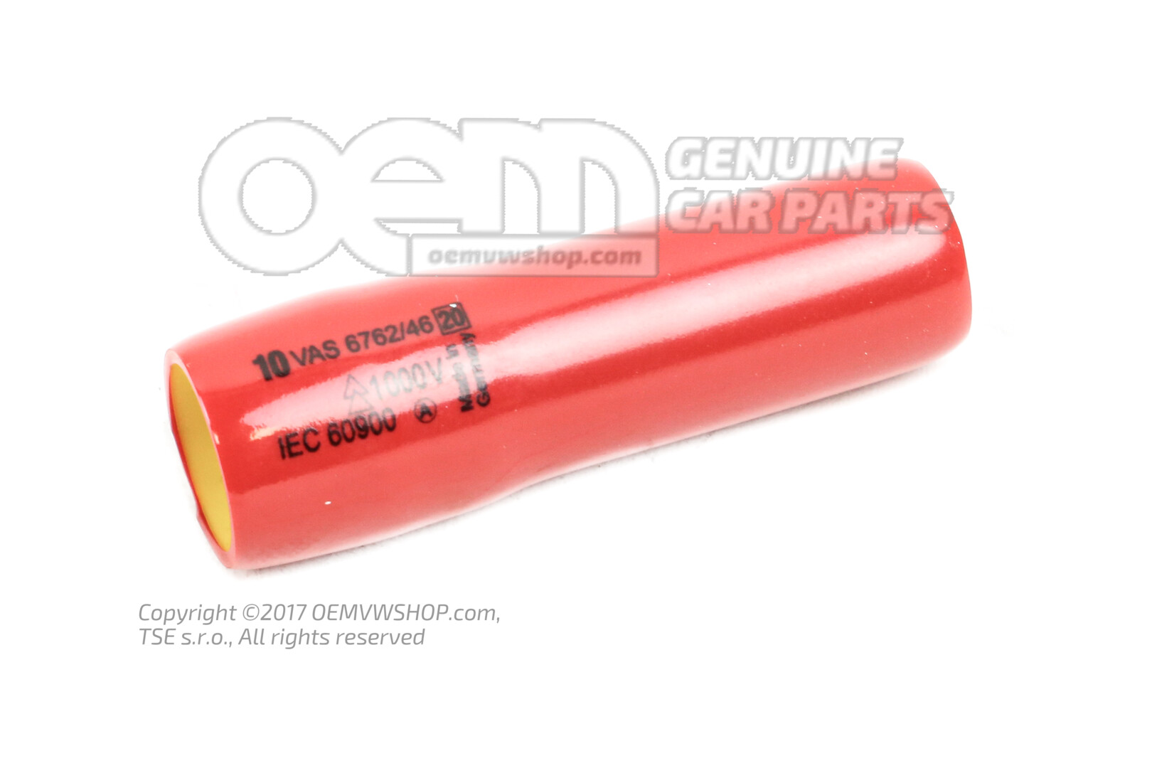 Hexagon socket, 10mm VAS 6762/46 Accessory for high voltage tool set VAS 6762. Used to secure the nut on the high voltage connector of the high voltage battery. The application is described in the relevant workshop manual. Initial use: VW e-up! 2014> Technical data - VDE-insulated hexagon socket - With magnet - Drive: 3/8'' - Width across flats: 10 #--- ASE 447 115 00 000 ---#